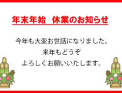 2025年 年末年始休業のお知らせ
